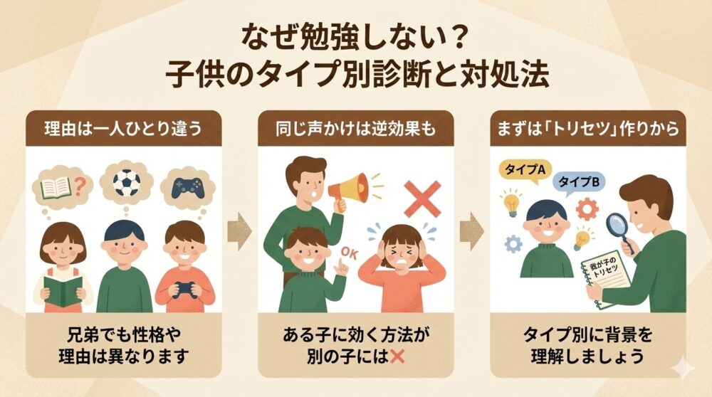 兄弟でも性格が違うように、勉強しない理由も一人ひとり異なります。